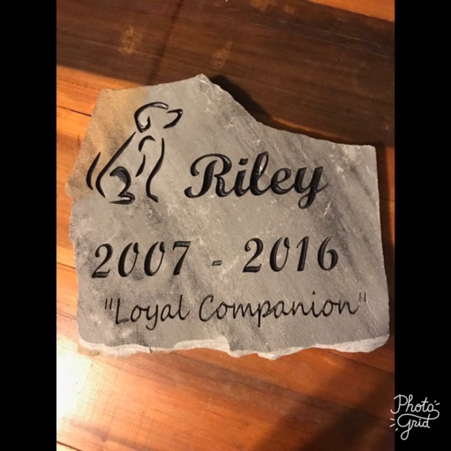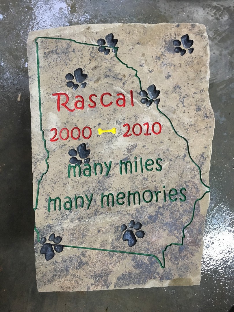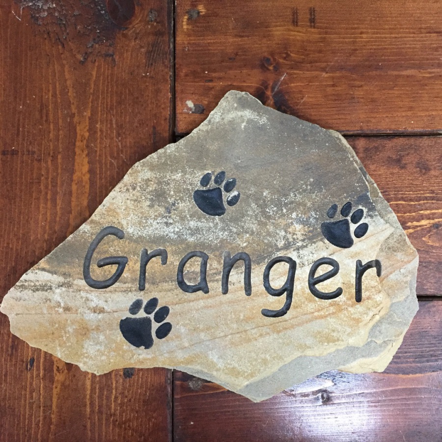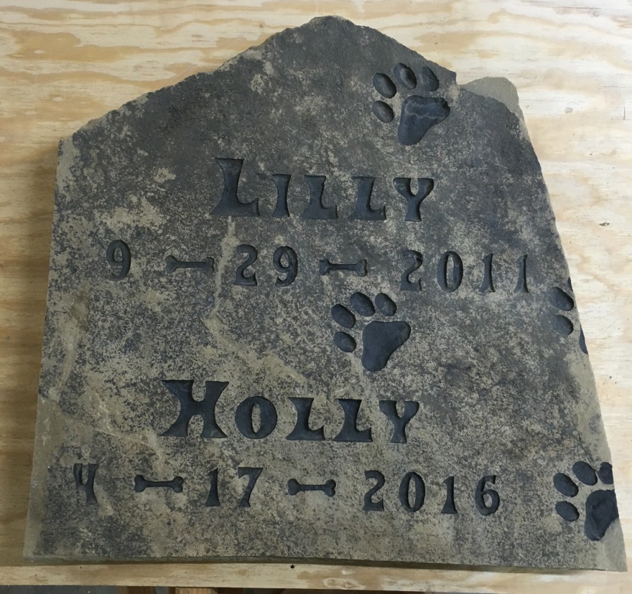 Pet's Name, and Paw Prints Symbols Sanblasted onto Flagstone